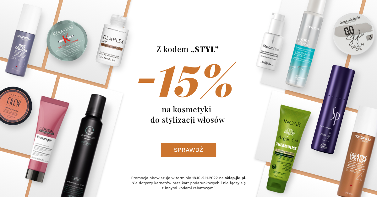 Dodaj do koszyka wybrane kosmetyki do stylizacji włosów, zastosuj kod ,,STYL'' i zyskaj 15% rabatu.